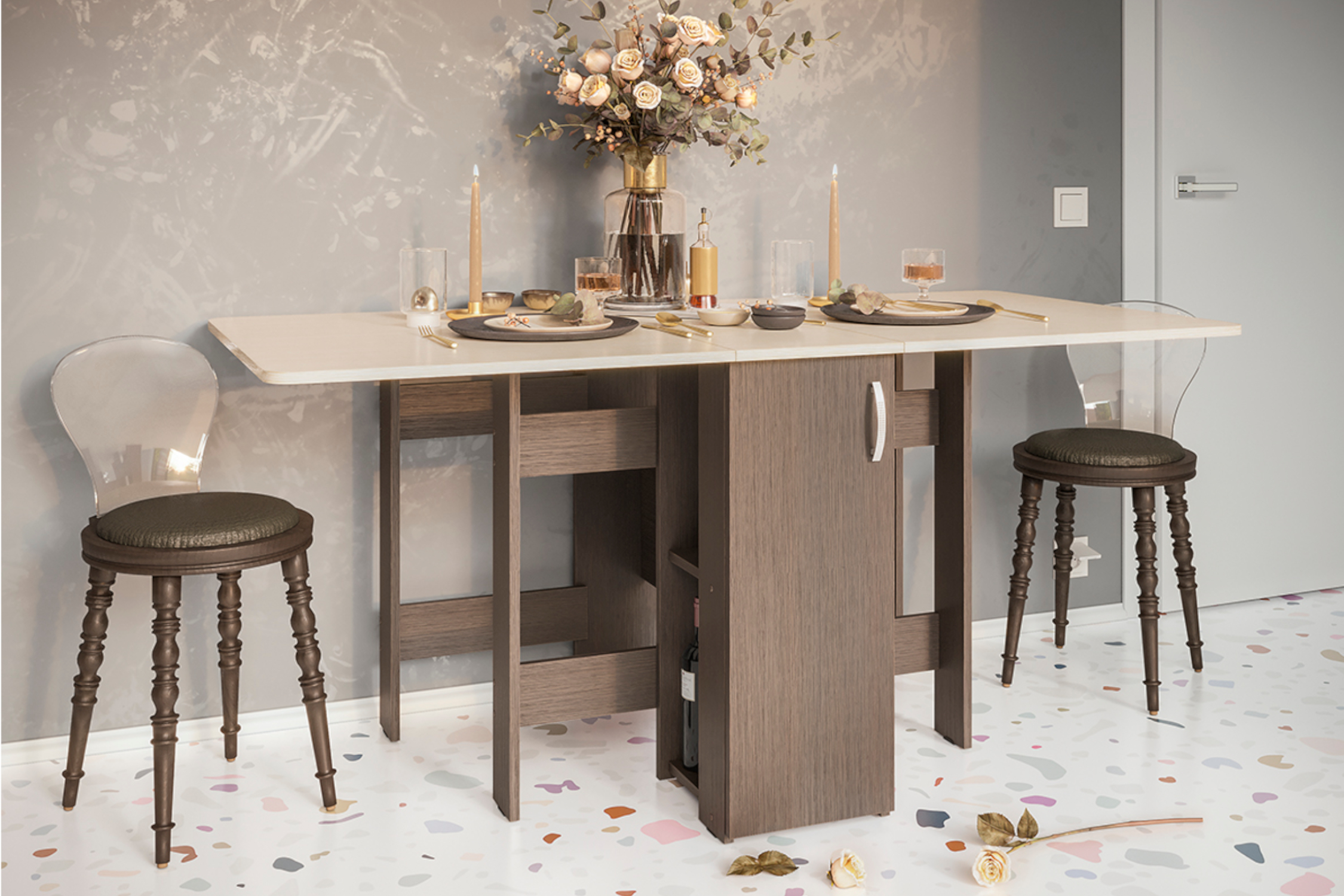 Стол-книжка 2 с баром венге / дуб белфорд